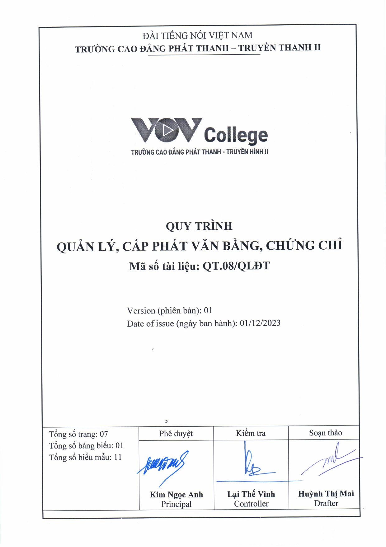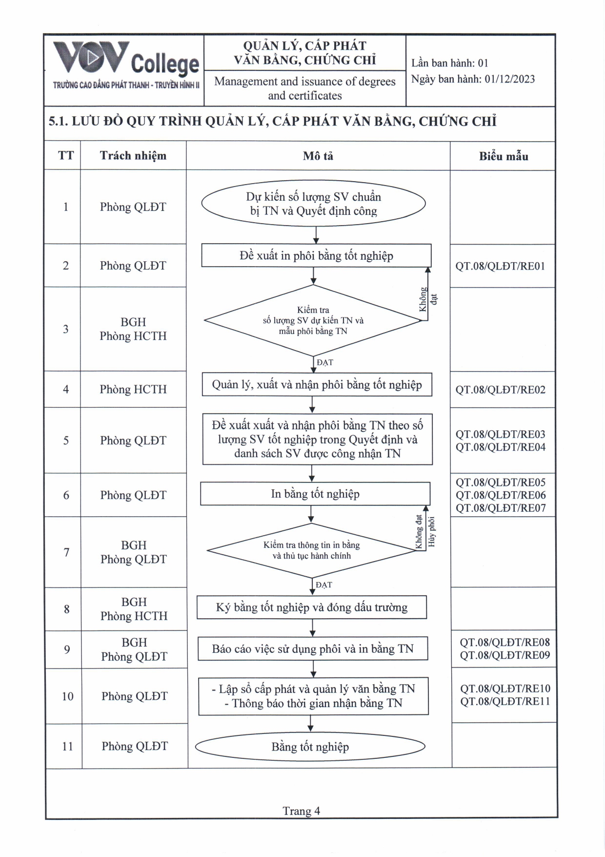 Quy trình quản lý, cấp phát văn bằng, chứng chỉ (Tải về)